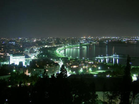 Photo of Baku via advantour.com (apparently it doesn’t look dirty at night and from the sky).