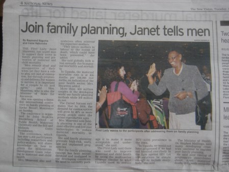 I’m in Kampala this week, attending the International Conference on Family Planning on behalf of the day job. Tonight at the opening session, I was surprised to see the first lady of Uganda on the program.