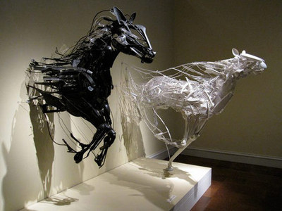 “It’s the dawn of a new decade! The economy is in trouble & we still have too much garbage! Your art could be part of the solution!!! If you make art from things that would have been thrown away – broken stuff, old stuff, burned stuff, torn stuff transformed into art- 2D & 3D in any media rescued from trash, your art is eligible. It’s happening again! The exhibit “Art of Detritus: Recycling with Imagination” features fine art from cast-off materials created by professional artists from throughout the country. The heart of this exhibit is the message of the three R’s: Reduce/Reuse/Recycle. The 2010 Art From Detritus Exhibition is a juried international art competition for dynamic, inventive and provocative work created from a multitude of materials that would have been discarded if not rescued for artmaking. The exhibit will occur in spring 2010 at PureLight Gallery located in a recycled building in Turner’s Falls Massachusetts.This show will be curated by Vernita Nemec, artist/curator, former director of Artists Talk On Art & Viridian Artists in New York City and currently on the Board of Directors of Soho20 in Chelsea NYC. She conceived the first Detritus Exhibition in 1993 & over the years has received funding from The Puffin Foundation, the Kaufmann Foundation and the National Recycling Coalition. Since then, there have been more than a dozen Detritus exhibitions through out the U.S. You can see images of and information on past Detritus shows here. Submit your best work now! Email 3-6 jpegs of work no larger than 500 dpi in either direction. Include in your email an Artwork List with size, materials used, title & date, plus an artist bio & statement. Submit by April 1, 2010 to: ncognita at earthfire dot org. There is no submission fee, but accepted artists will make a small contribution towards the exhibition expenses.”