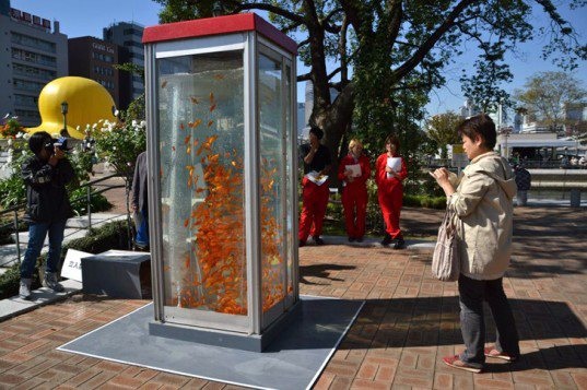 Six years and more than one thousand posts later, this subject never gets old. Every time I verge on trash-fatigue, I discover some inspired creative project. This morning, for example, I woke up, went online and came across two amazing feats of upcycling. This phone-booth-turned-fish-tank in Osaka, Japan (via inhabitat).