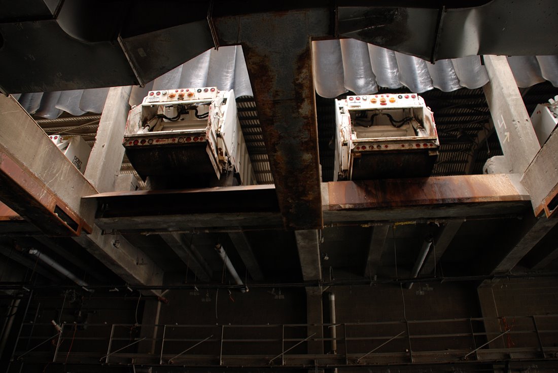 Filmmaker, photographer and location scout Nathan Kensinger publishes two photo essays per month on his blog dedicated to “the abandoned and industrial edges of New York”. In yesterday’s offering, he turned a gritty eye to the Hamilton Avenue Marine Transfer Station, which was decommissioned with the closing of the Fresh Kills landfill, but is now open for bids from solid waste management companies should any be interested in retrofitting the space.
