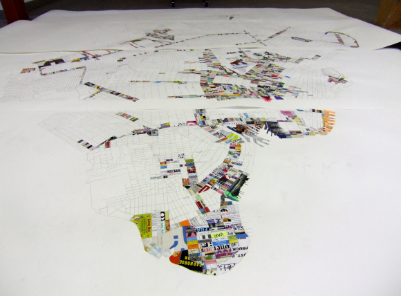 Artist Jennifer Maravillas created a cartograph of Brooklyn representing each block with a piece of trash collected on that block. This project — http://71squaremiles.com/ — combines so, so many of my favorite things into a massive, tidy, beautiful collage. Check out the work in progress here. Prints of past, equally political and whimsical for sale here.