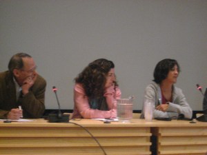 (French economist Gérard Bertolini, me, Panama-based American artist Donna Conlon)