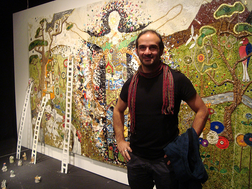 Kuros and his piece "Finding Away," photo by Lele Barnett